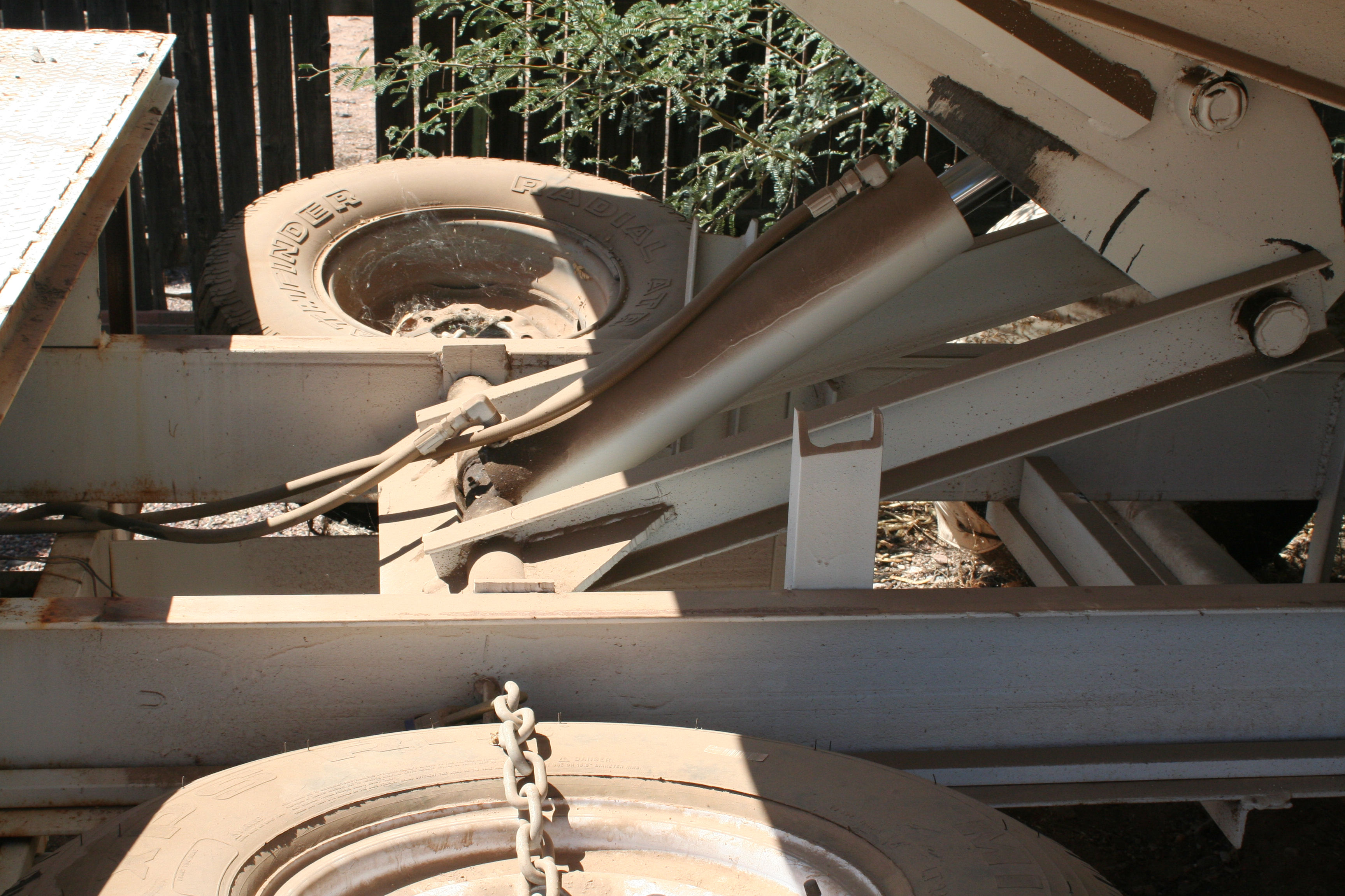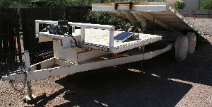 2003 custom built Mackey tilt bed trailer 19' tilt deck with 6' deck up front, 102" wide diamond plate deck, 9000# Mile marker winch, dual spare tire racks, dual control of winch and tilt bed (switches at winch and wired remotes), Michelien xtrib tires, payload approx 15K # GVW 20000 max $11,500.00 |